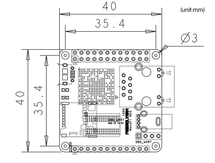 - 机械结构图(dxf格式):http://wiki.friendlyarm.com/wiki/images/9/99/NanoPi-NEO-1606-dimensions%28dxf%29.zip