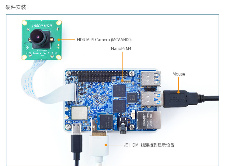 人脸识别基础套件 :NanoPi-M4单板主机+M4散热片+5V4A电源适配器+Type-C线+USB2UART串口调试工具+MCAM400宽动态摄像头+HDMI线(更多人脸识别套餐,请点击:人脸识别开发套件)