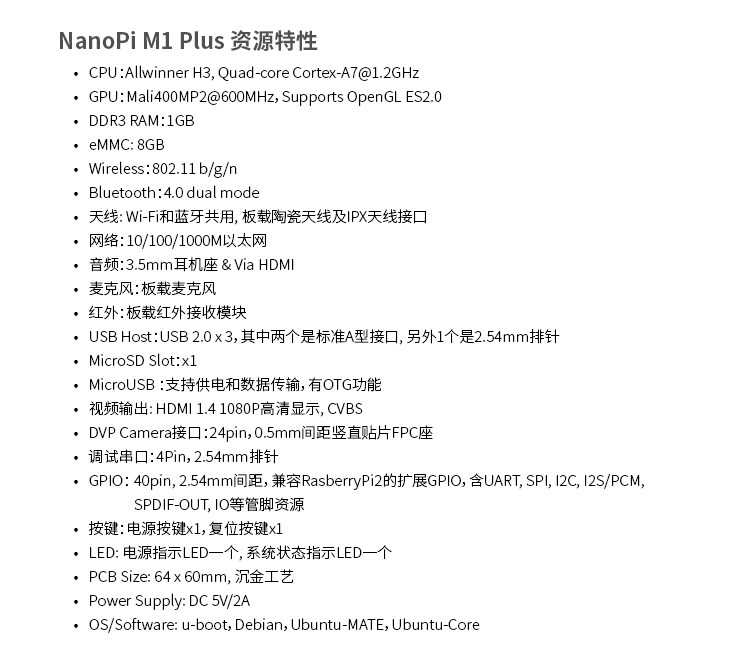 * 维基使用手册链接:[http://wiki.friendlyarm.com/wiki/index.php/NanoPi_M1_Plus/zh]